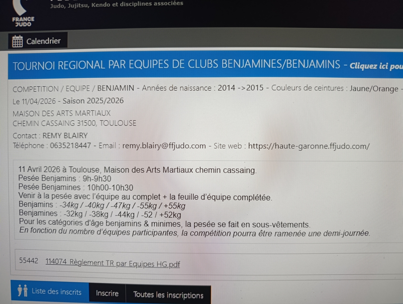 Nous avons besoin de savoir quels sont les enfants qui seraient susceptibles d'être intéressés par cet événement bien entendu c'est une compétition par équipe donc il faut être sûr d'être présent.