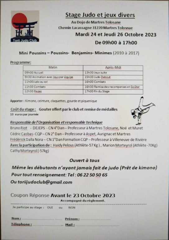 Apporter : Kimono, ceinture, claquettes, gourde et piquenique