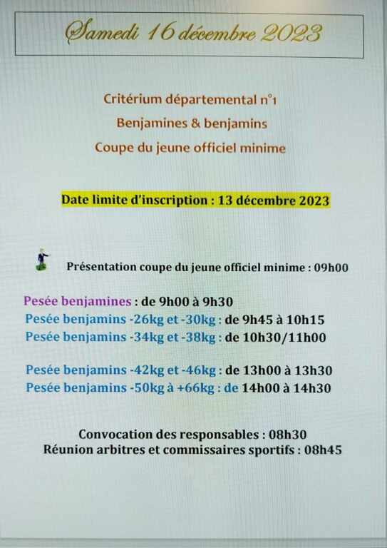 Pesée benjamins -34kg et -38kg : de 10h30/11h00