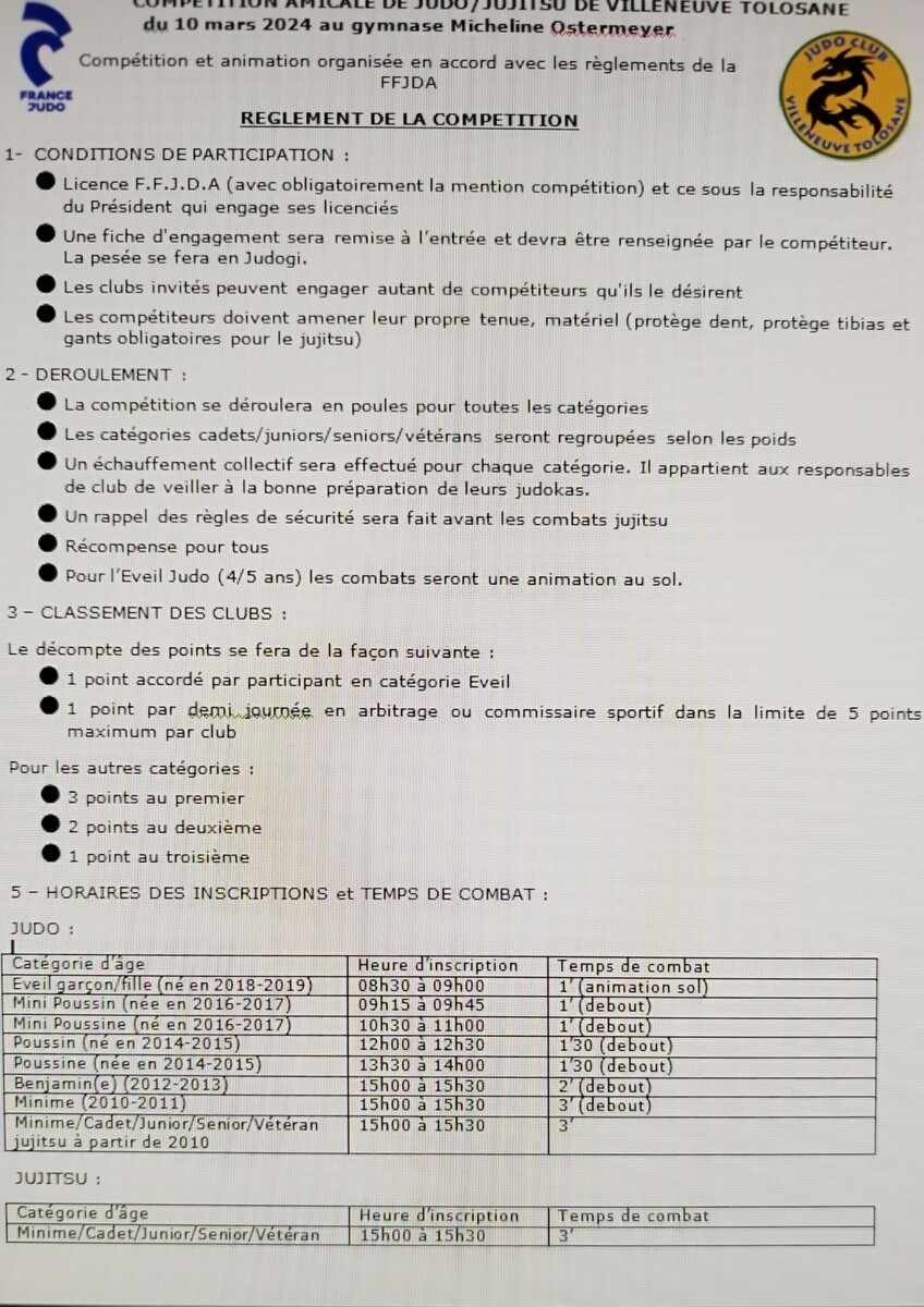 Minime/Cadet/Junior/Senior/Vétéran jujitsu à partir de 2010 |