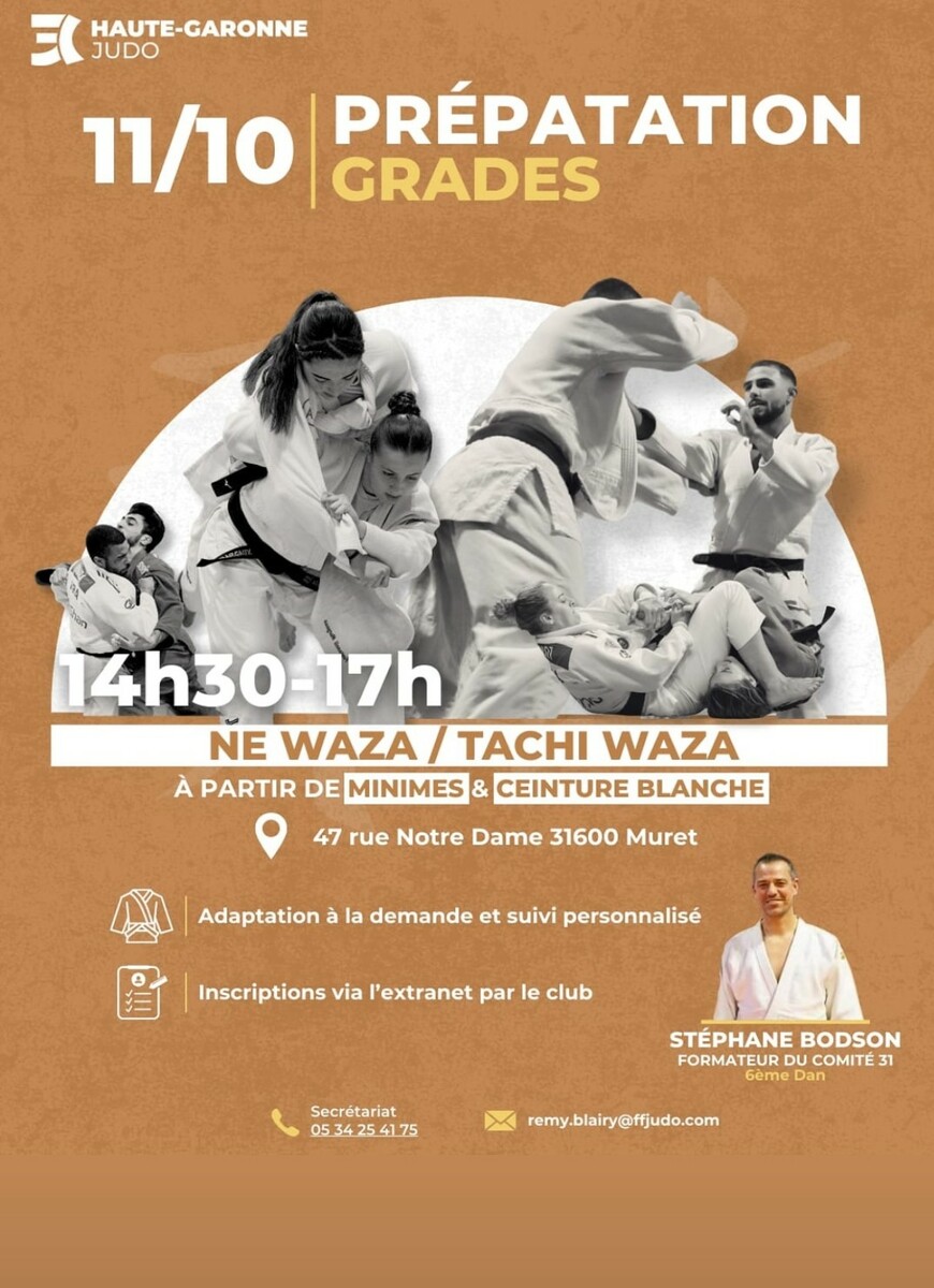 Réparation au grade à partir de la catégorie minime jusqu'à seniors de la ceinture blanche à la ceinture noire.