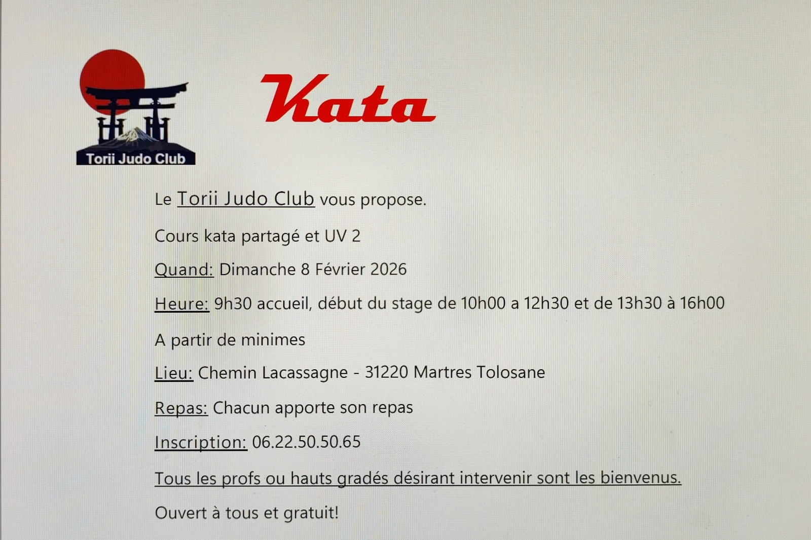 Stage Kata ouvert à tous à partir de la catégorie minime jusqu'à senior même débutant