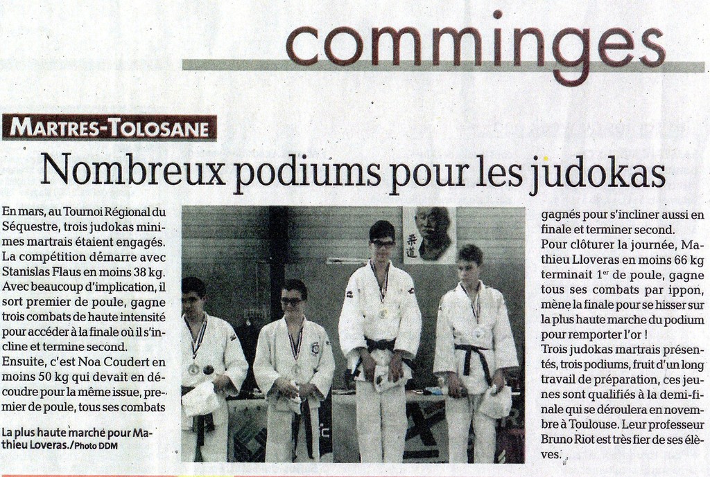 3 Judokas Martrais présentés et 3 podiums, fruit d’un long travail de préparation, rapellons que ces 3 jeunes sont qualifiés à la demie finale qui se déroulera en novembre à Toulouse.
